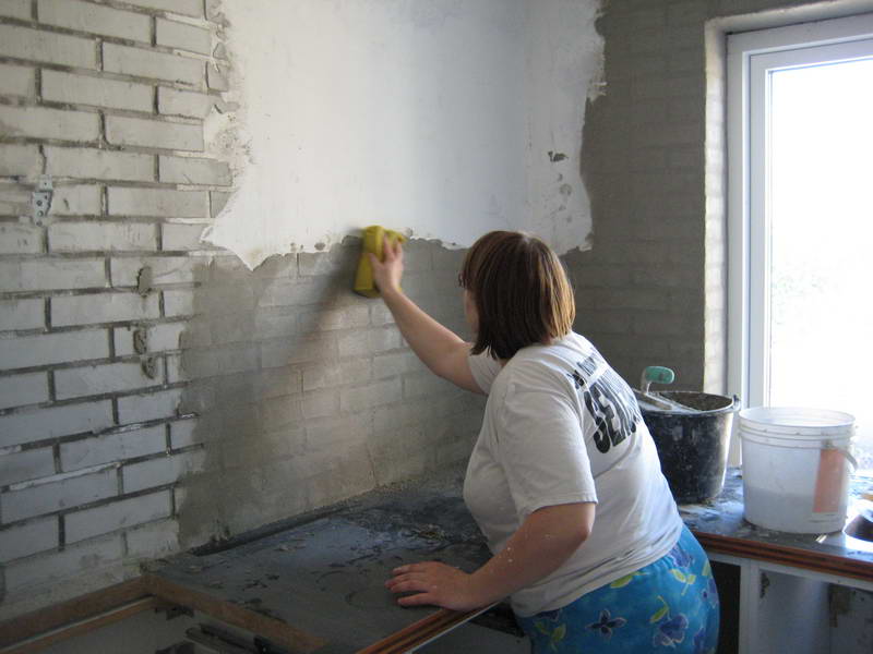 Så er det tid for at komme den grundpuds mørtel på som skal bruges til
