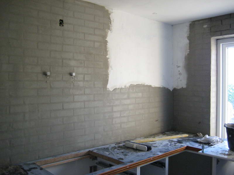 Vi startede med en rå mur som vi spartlede for at få en