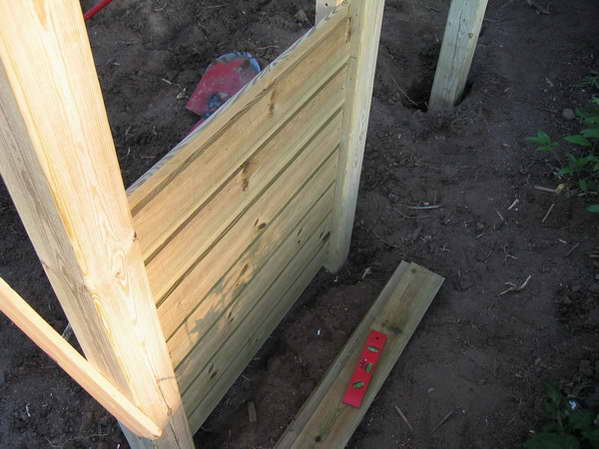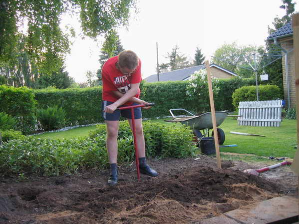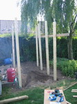 bjækerne monteret og alle stolper er stampet hårdt fast. |