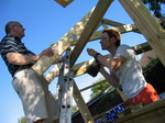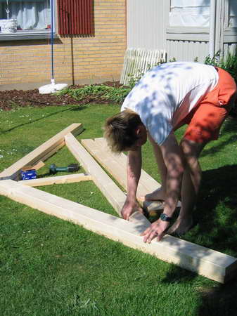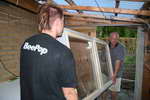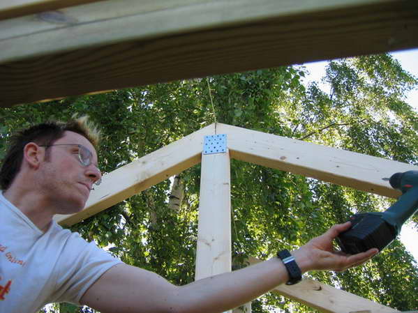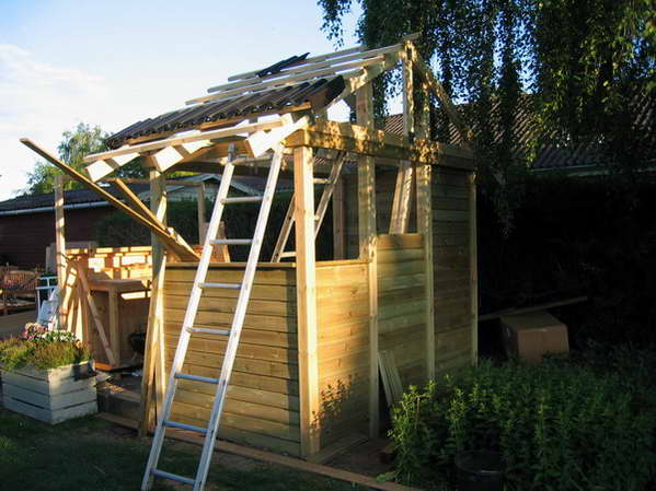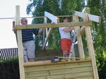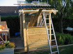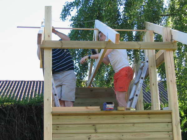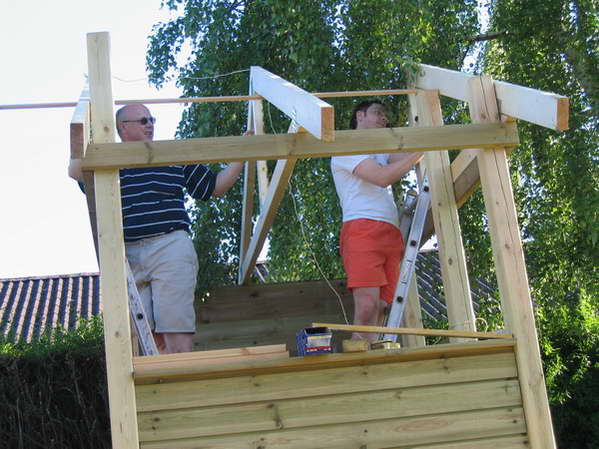 hjælp da spærene skulle sættes op. |