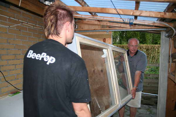 montering af glas, nu må vi så se om det passer... |