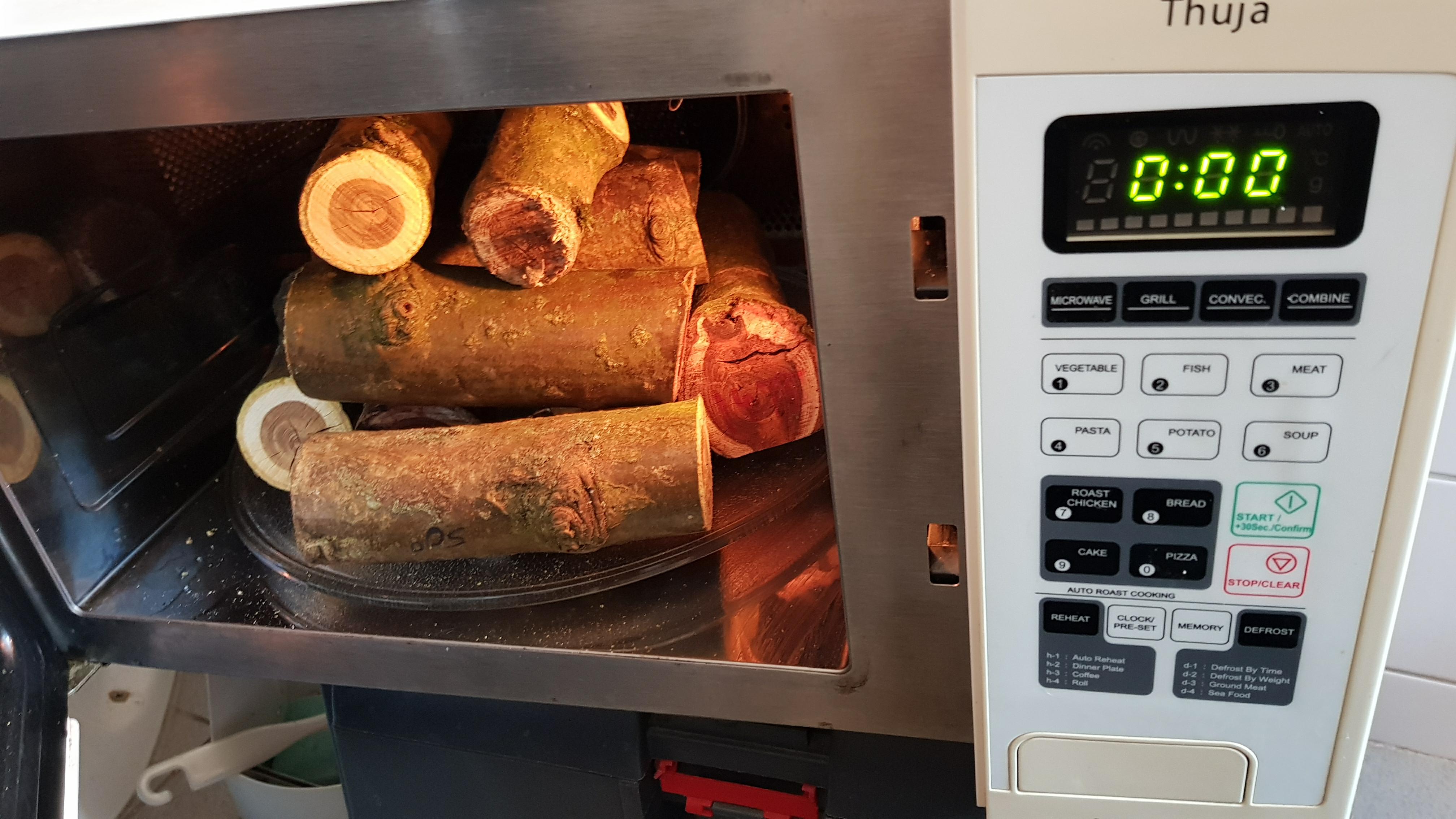 Tørring af træ i microovn