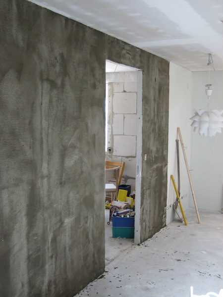 1. Vi startede med en rå mur som vi spartlede for at få en nogenlunde jævn