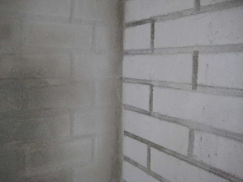 Så påføres der et tyndt lag over alle murstenene og når det har siddet